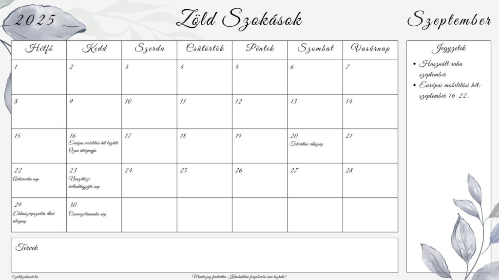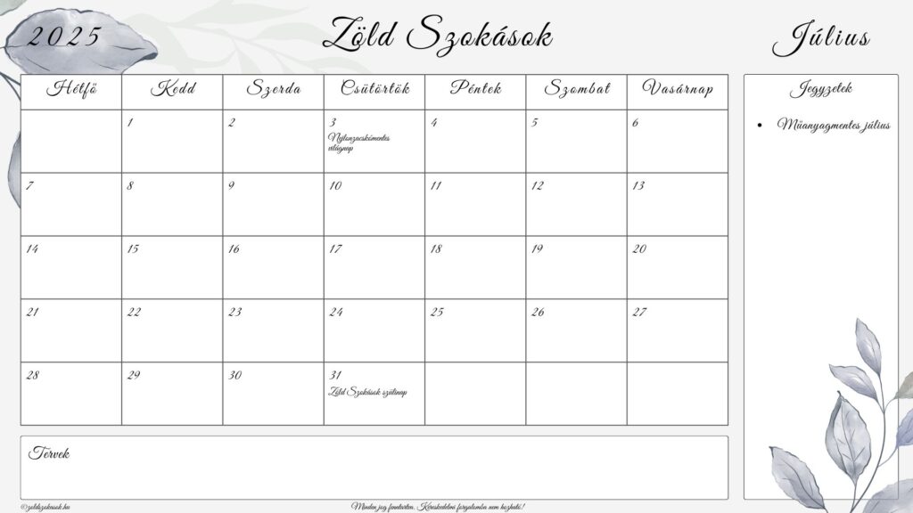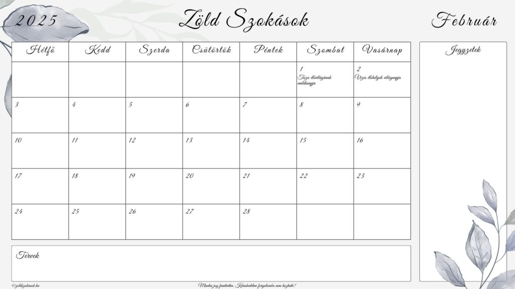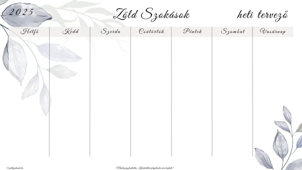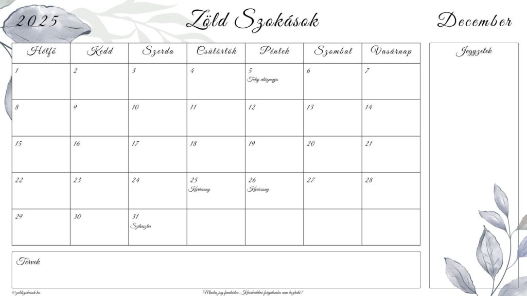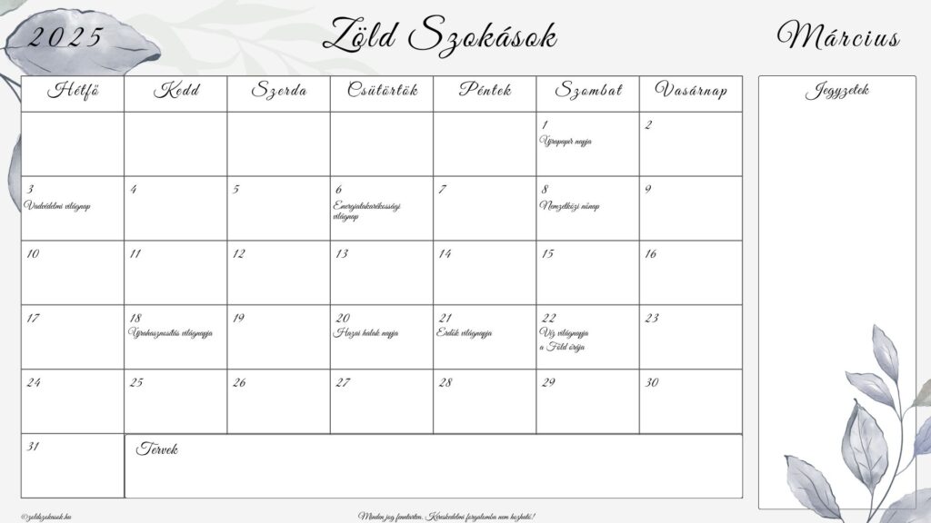 Ingyenesen letölthető Zöld Szokások 2025-ös tervező naptár jpg formátumban, kattints a képekre a letöltéshez: