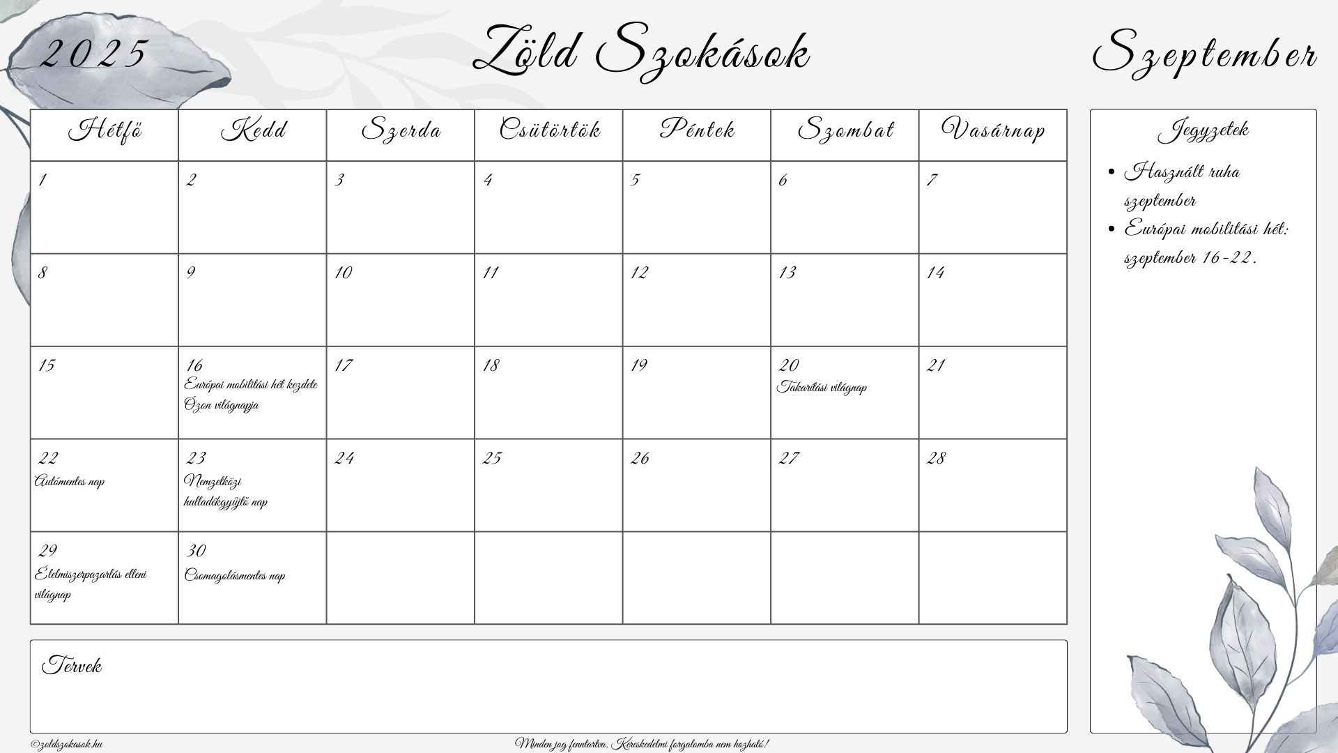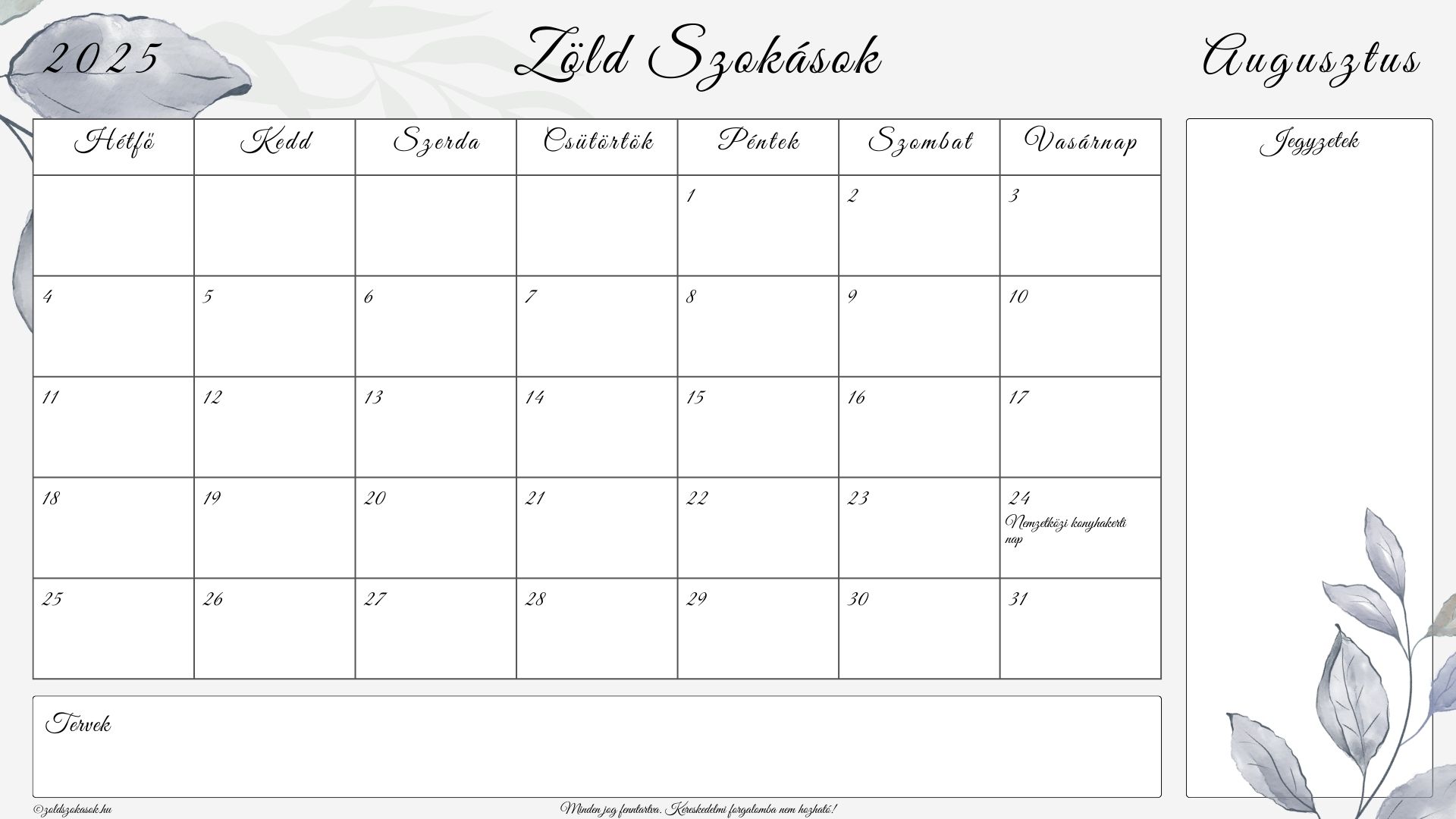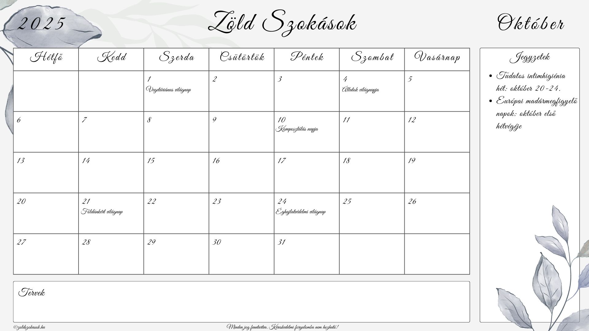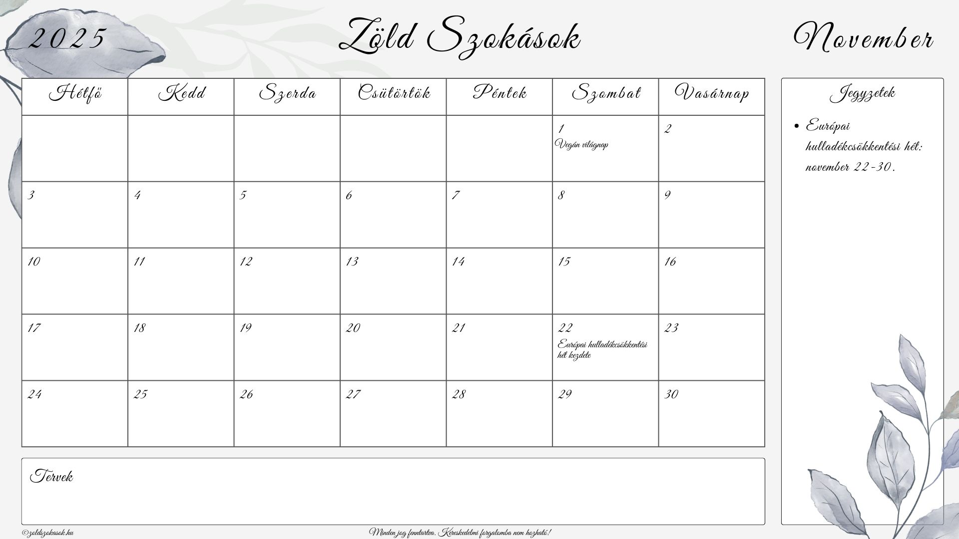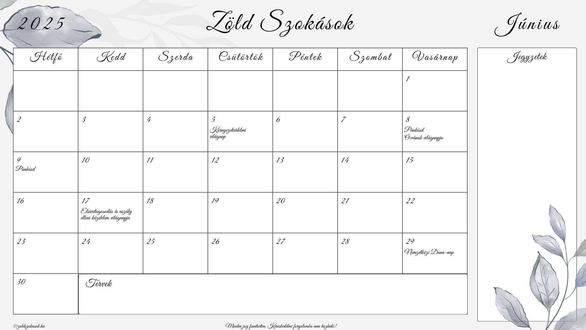 Ingyenesen letölthető Zöld Szokások 2025-ös tervező naptár jpg formátumban, kattints a képekre a letöltéshez: